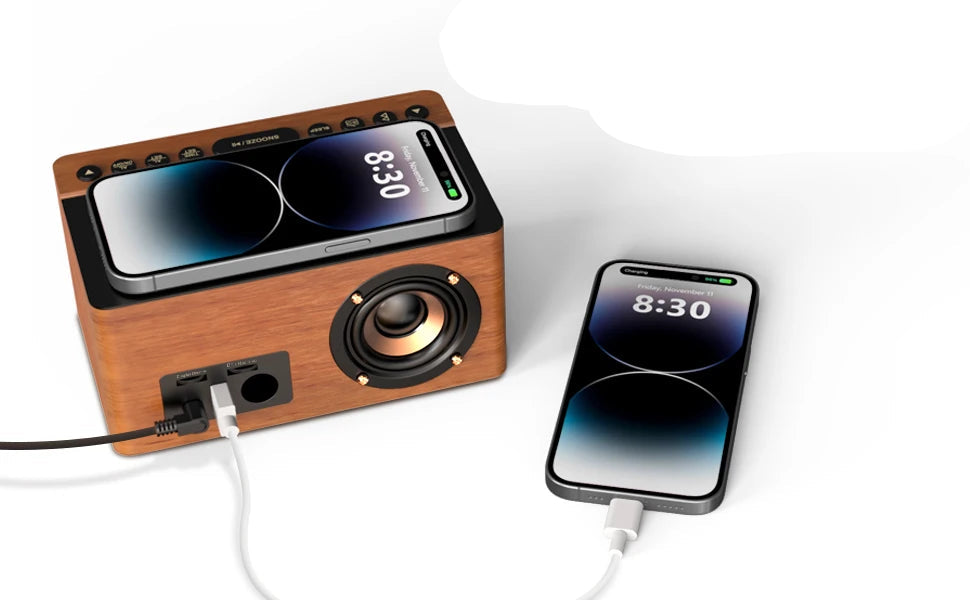 Fabriqué en bois véritable, ce radio-réveil digital combine un style classique et moderne qui s’intègre parfaitement dans une chambre, un bureau ou un salon. Sa finition boisée apporte une touche chaleureuse et naturelle à votre intérieur.